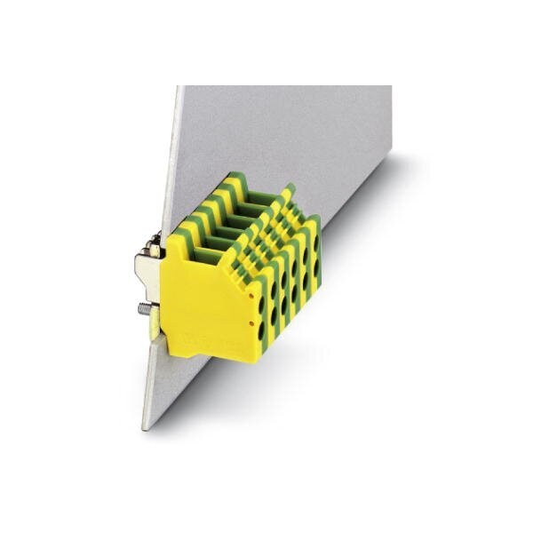 Panel feed-through terminal block connection method: Screw connection with tension sleeve number of positions: 1 load current: 18 A cross section: 0.2 mm - 6 mm connection direction of the conductor to plug-in direction: 90 ° width: 6.2 mm color: green-yellow
