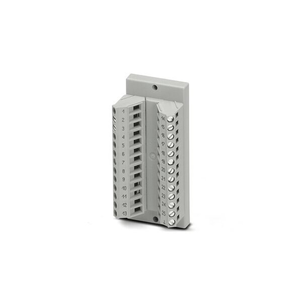 The VARIOFACE feed-through module implements a 1:1 connection between screw connection terminal blocks and a D-SUB miniature pin strip number of positions: 25. A separate ground tap is available.