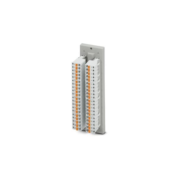 The VARIOFACE feed-through module implements a 1:1 connection between plug-in push-in spring-cage connection terminal blocks and a D-SUB miniature socket strip number of positions: 37. A separate ground tap is available.