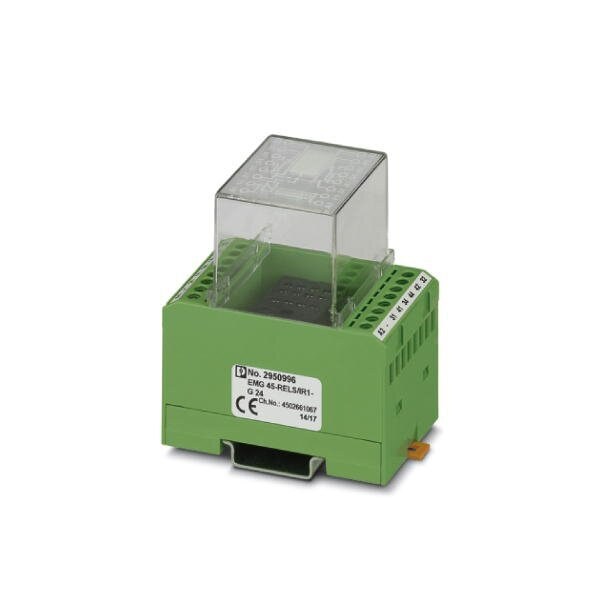 Relay module with 1 plug-in base for industrial relays size 1 contact: 4 PDTs input voltage 24-48 V DC with light indicator damping and polarity protection diode