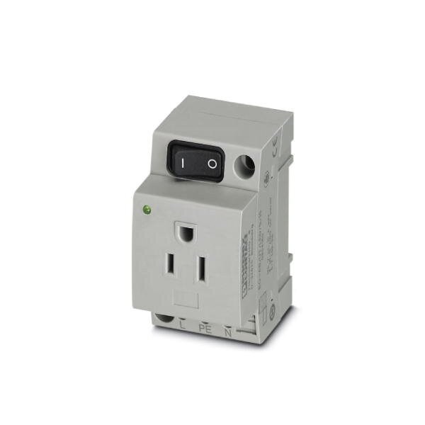 Socket Pin connector pattern type AB 15A Screw connection for USA and other countries with LED display and switch gray for mounting on a DIN rail in the service interface or direct mounting 125 V AC 15 A -60 °C 105 °C UL 508