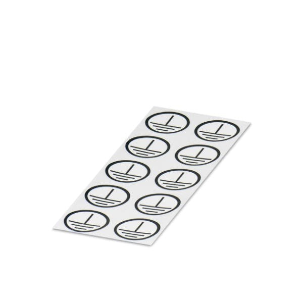 Label self-adhesive 16 mm diameter available as: 100 sheets with 10 labels each black grounding symbol on white background