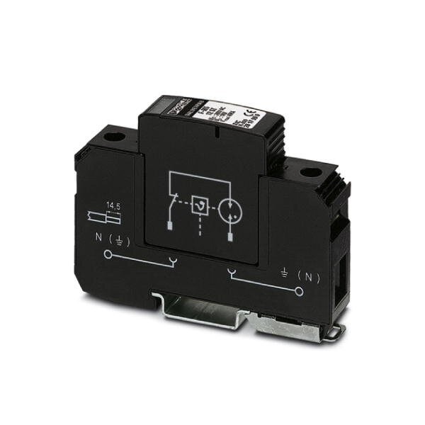 Surge arrester type 2 consisting of base element and protective plug with N-PE total current spark gap for mounting on NS 35/7.5 housing width: 17.5 mm 1 Div.