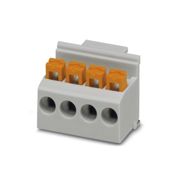 PCB terminal block nominal current: 22 A rated voltage III/2: 250 V nominal cross section: 2.5 mm Number of potentials: 4 Number of rows: 1 Number of positions per row: 4 product range: FKDSO 2 5/..-L pitch: 5 mm connection method: Push-in spring connection moun