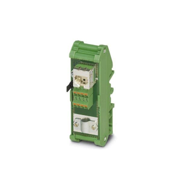 Patch panel one RJ45 jack to 8 spring-force connection terminal blocks 1:1 assignment CAT5e 10/100/1000 Mbps DIN rail adapter IP20 option of shield contacting to the DIN rail via jumpers