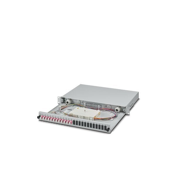 19 splice box gray 1 RU fully pre-assembled ready to splice for 12x LC duplex OM4