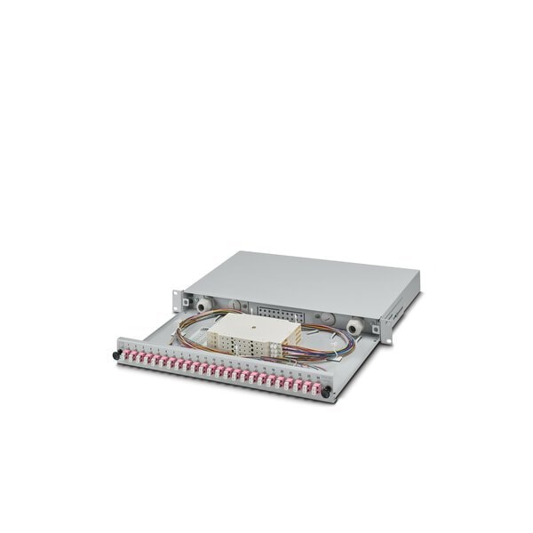 19 splice box gray 1 RU fully pre-assembled ready to splice for 24x LC duplex OM4