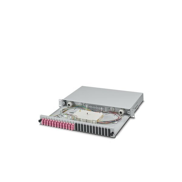 19 splice box gray 1 RU fully pre-assembled ready to splice for 12x SC duplex OM4