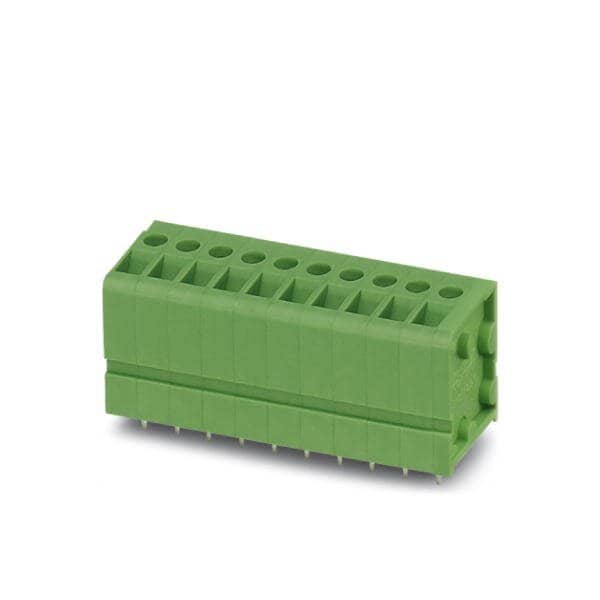 PCB terminal block Nominal current: 24 A Nom. voltage: 400 V Pitch: 5 mm Number of positions: 16 Connection method: Front screw connection Mounting: Wave soldering Conductor/PCB connection direction: 90 ° Color: black