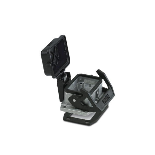 HEAVYCON B6 panel mounting base with single locking latch with plastic protective cover with flat gasket salt-water-resistant aluminum conductive profile gasket.