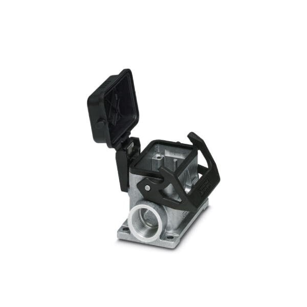 Box mounting base with cover B6 With single locking latch Material: Aluminum die-cast Protective cover material: PA Cable outlets: 2 Lateral Height: 55 mm Cable gland: none Gland: no 2x M20 Standard