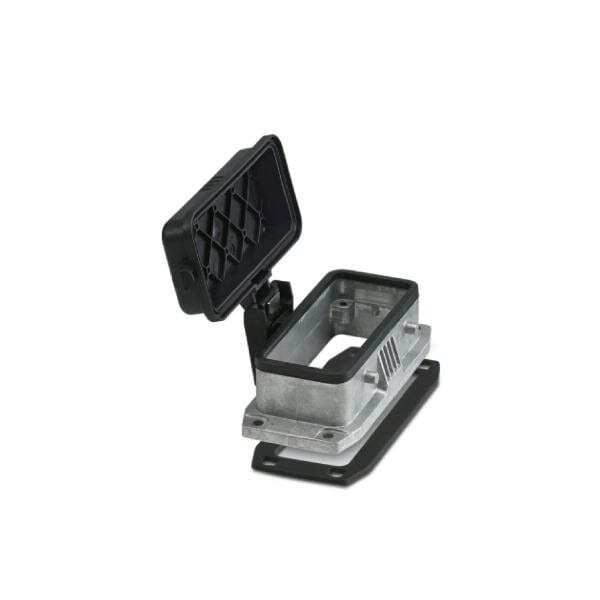 HEAVYCON B16 panel mounting base for double locking latch with plastic protective cover with flat gasket salt-water-resistant aluminum conductive profile gasket.