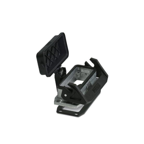 HEAVYCON B16 panel mounting base with single locking latch with plastic protective cover with flat gasket salt-water-resistant aluminum conductive profile gasket.