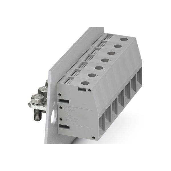 Panel feed-through terminal block connection method: Screw connection with tension sleeve Cable lug connection number of positions: 1 load current: 150 A cross section: 16 mm - 50 mm connection direction of the conductor to plug-in direction: 0 ° width: 18.8 mm color: green-yello