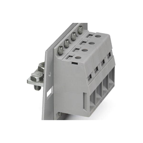 Panel feed-through terminal block connection method: Screw connection with tension sleeve Cable lug connection number of positions: 1 load current: 232 A cross section: 35 mm - 95 mm connection direction of the conductor to plug-in direction: 0 ° width: 25 mm color: gray