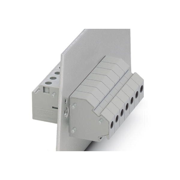 Panel feed-through terminal block connection method: Screw connection with tension sleeve Screw connection with tension sleeve number of positions: 1 load current: 57 A cross section: 0.5 mm - 16 mm connection direction of the conductor to plug-in direction: -90 ° width: 10.1 mm