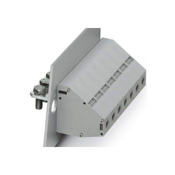 Panel feed-through terminal block connection method: Screw connection with tension sleeve Cable lug connection number of positions: 1 load current: 150 A cross section: 16 mm - 50 mm connection direction of the conductor to plug-in direction: -90 ° width: 18.8 mm color: gray