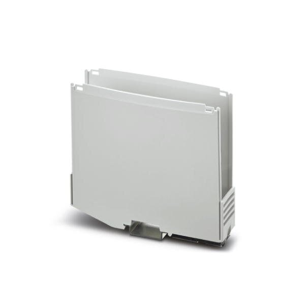 DIN rail housing Lower housing part with metal foot catch Level 1: with vents width: 25 mm height: 100 mm depth: 130.9 mm color: light gray 7035 cross connection: DIN rail connector optional number of positions cross connector: 8