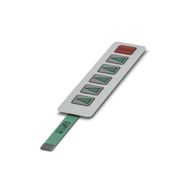 Membrane keypad self-adhesive silver conduction technology 6 keys embossed 4 colors connecting cable: 50 mm pitch: 1.0 mm operating temperature: -20°C ... 70°C