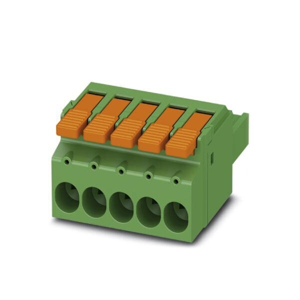 PCB connector nominal cross section: 6 mm color: green nominal current: 41 A rated voltage III/2: 1000 V contact surface: Tin type of contact: Female connector Number of potentials: 5 Number of rows: 1 Number of positions per row: 5 number of connections: 5
