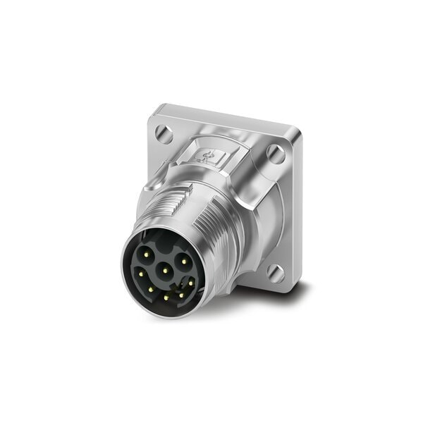 Device connector front mounting straight for standard and ONECLICK fast locking system M17 No. of pos.: 8 type of contact: Pin Crimp connection flange dimensions: 26 mm x 26 mm coding:N