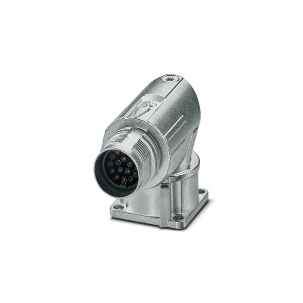Device connector front mounting angled rotatable for standard and ONECLICK fast locking system M17 No. of pos.: 17 type of contact: Socket Crimp connection flange dimensions: 26 mm x 26 mm coding:N