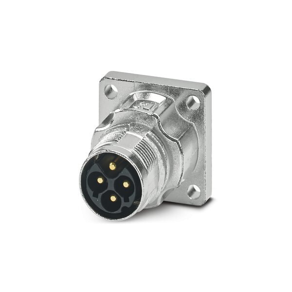 Device connector front mounting straight for standard and ONECLICK fast locking system M17 No. of pos.: 3+PE type of contact: Pin Crimp connection flange dimensions: 28 mm x 28 mm coding:N