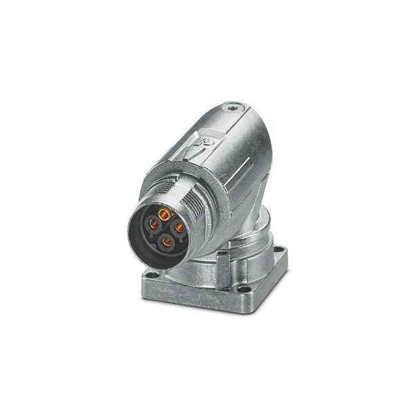 Device connector front mounting angled rotatable for standard and ONECLICK fast locking system M17 flange dimensions: 28 mm x 28 mm