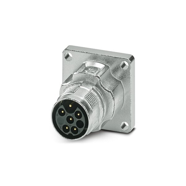Device connector front mounting straight for standard and ONECLICK fast locking system M17 No. of pos.: 5+PE type of contact: Pin Crimp connection flange dimensions: 28 mm x 28 mm coding:N
