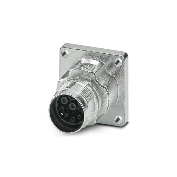 Device connector front mounting straight for standard and ONECLICK fast locking system M17 No. of pos.: 5+3+PE type of contact: Socket Crimp connection flange dimensions: 28 mm x 28 mm coding:N