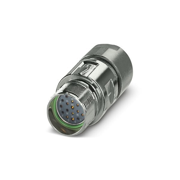 Coupler connector M23 PRO straight shielded: yes for standard and ONECLICK fast locking system M23 No. of pos.: 16+2+PE type of contact: Socket Crimp connection cable diameter range: 9 mm ... 15 mm