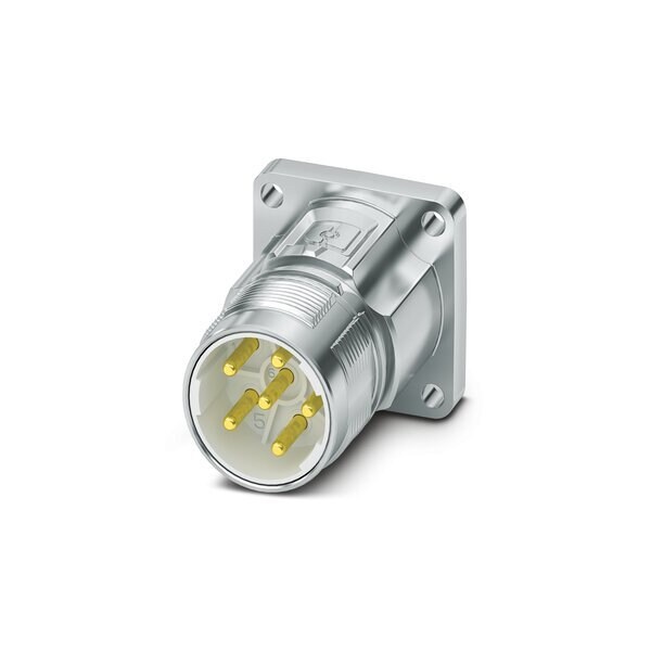 Device connector front mounting M23 PRO straight for standard and ONECLICK fast locking system M23 No. of pos.: 5+PE type of contact: Pin Crimp connection 4x 3.2 flange dimensions: 28 mm x 28 mm