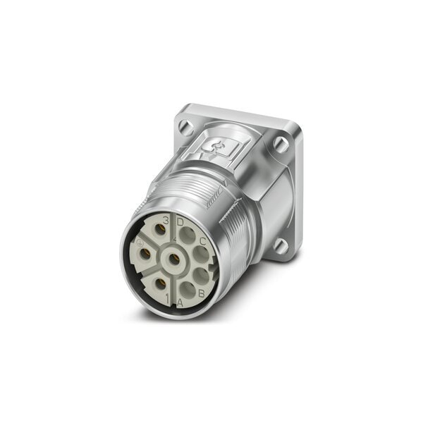 Device connector front mounting M23 PRO straight for standard and ONECLICK fast locking system M23 No. of pos.: 4+3+PE type of contact: Socket Crimp connection 4x 3.2 flange dimensions: 26 mm x 26 mm
