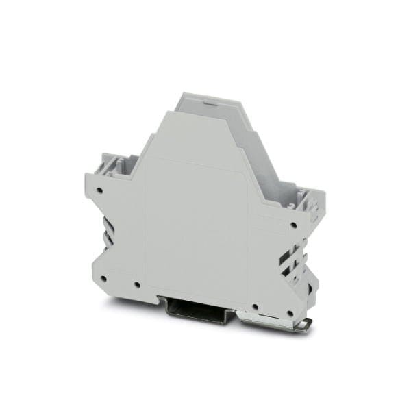 DIN rail housing Lower housing part with metal foot catch and FE contact flat design with vents width: 22.6 mm height: 99 mm depth: 84.8 mm color: light gray 7035 cross connection: without bus connector number of positions cross connector: not relevant