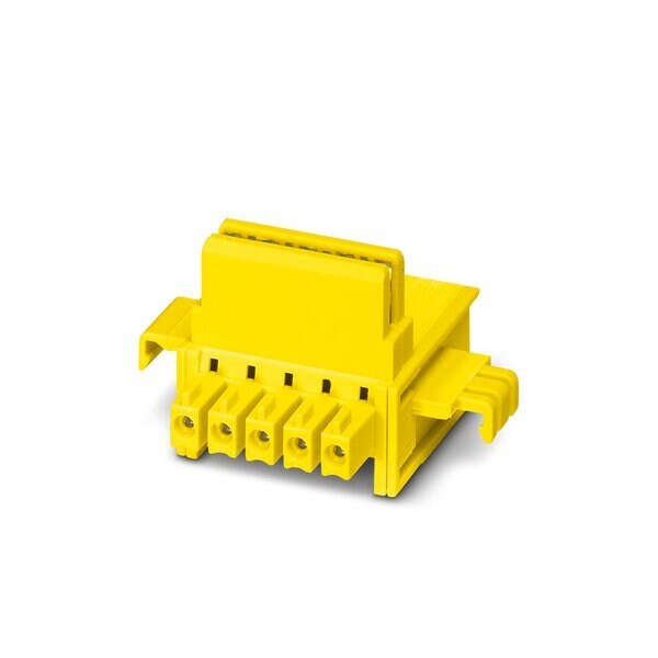 DIN rail connector nominal current: 8 A parallel contacts rated voltage III/2: 125 V number of positions: 5 pitch: 3.81 mm color: yellow mounting: DIN rail item with gold-plated contacts bus connector for connecting to electronics housings 5 parallel contacts