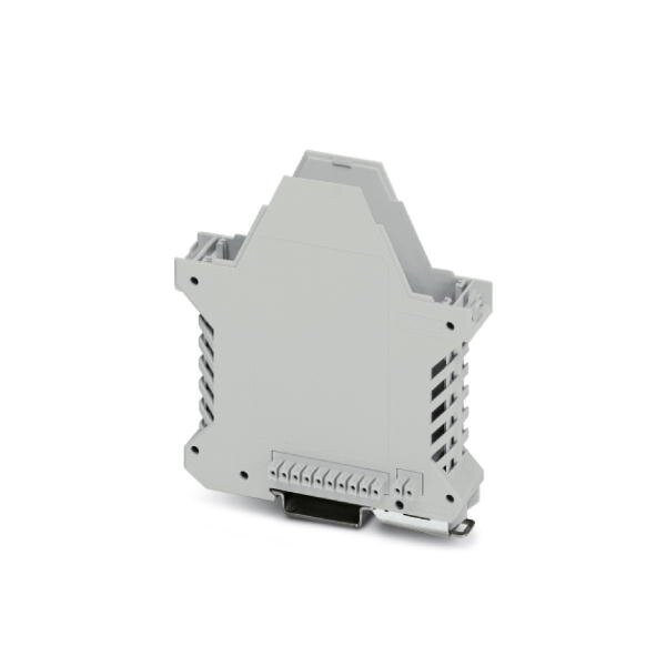 DIN rail housing Lower housing part with metal foot catch with FE contact tall design with vents width: 22.6 mm height: 99 mm depth: 107.3 mm color: light gray 7035 cross connection: integrated bus connector number of positions cross connector: 10+2 Bus connec