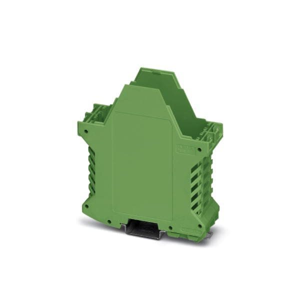 DIN rail housing Lower housing part with metal foot catch tall design with vents width: 35.2 mm height: 99 mm depth: 107.3 mm color: green 6021 cross connection: DIN rail connector optional number of positions cross connector: 5
