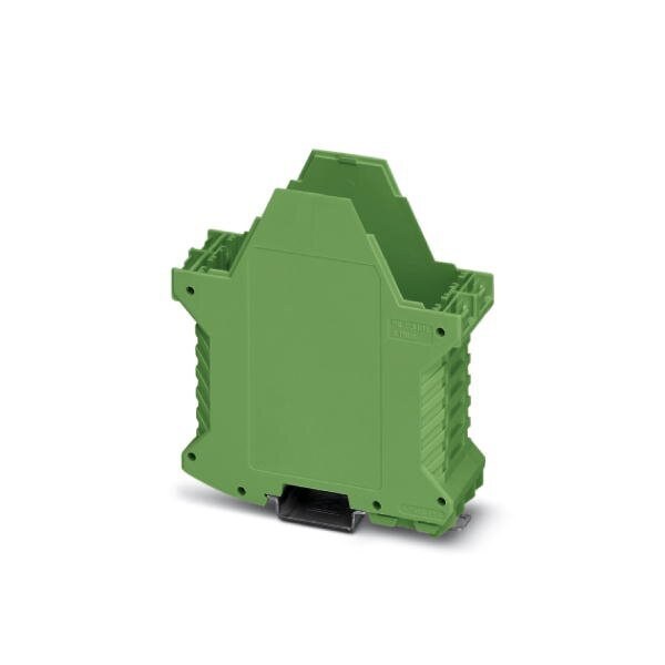 DIN rail housing Lower housing part with metal foot catch tall design without vents width: 35.2 mm height: 99 mm depth: 107.3 mm color: green 6021 cross connection: DIN rail connector optional number of positions cross connector: 5