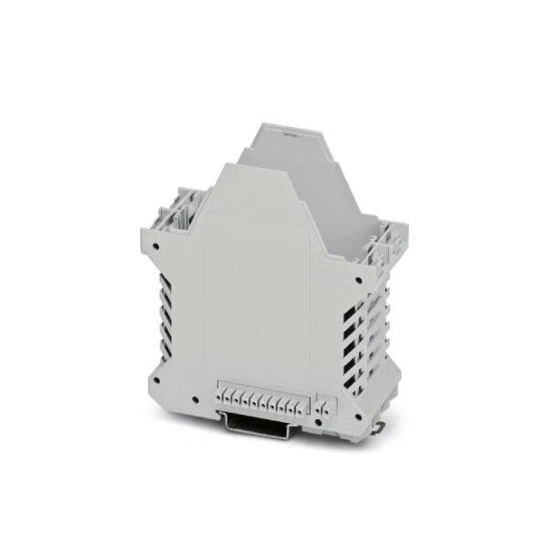 DIN rail housing Lower housing part with metal foot catch tall design with vents width: 45.2 mm height: 99 mm depth: 107.3 mm color: light gray 7035 cross connection: integrated bus connector number of positions cross connector: 10+2 Bus connector: 10 parallel