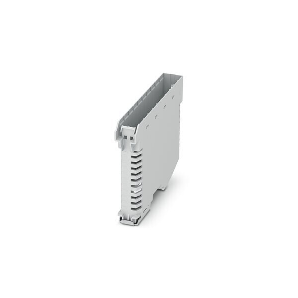 DIN rail housing Lower housing part with metal foot catch with vents width: 18.9 mm height: 120.6 mm depth: 82.85 mm color: light gray 7035 cross connection: DIN rail connector optional number of positions cross connector: 8