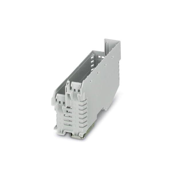 DIN rail housing Lower housing part with metal foot catch with vents width: 37.9 mm height: 120.6 mm depth: 64.3 mm color: light gray 7035 cross connection: DIN rail connector optional number of positions cross connector: 8