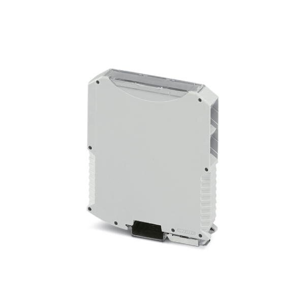 DIN rail housing Complete housing with metal foot catch tall design without vents width: 17.6 mm height: 99 mm depth: 113.65 mm color: light gray 7035 cross connection: DIN rail connector optional number of positions cross connector: 5