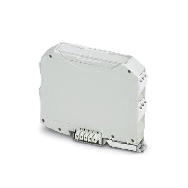DIN rail housing Complete housing with metal foot catch ultra-flat design without vents width: 17.6 mm height: 85 mm depth: 70.4 mm color: light gray 7035 cross connection: DIN rail connector optional number of positions cross connector: 5