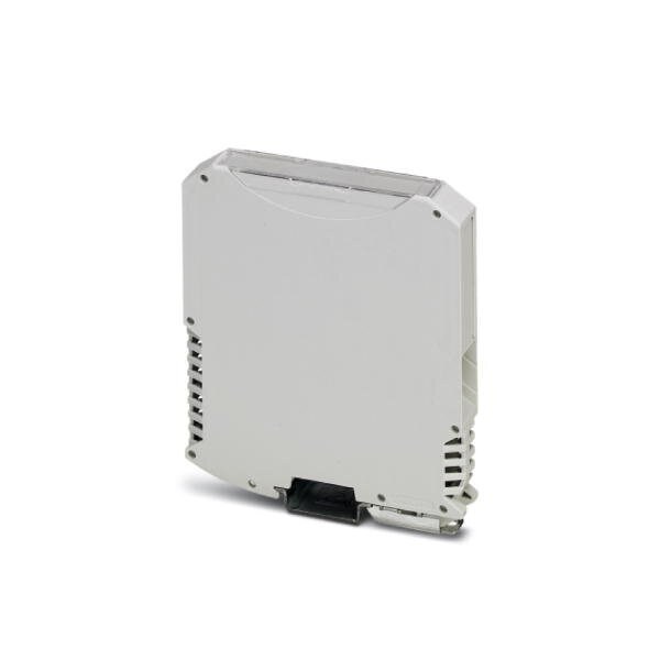 DIN rail housing Complete housing with metal foot catch tall design with vents width: 17.6 mm height: 99 mm depth: 113.65 mm color: light gray 7035 cross connection: DIN rail connector optional number of positions cross connector: 5