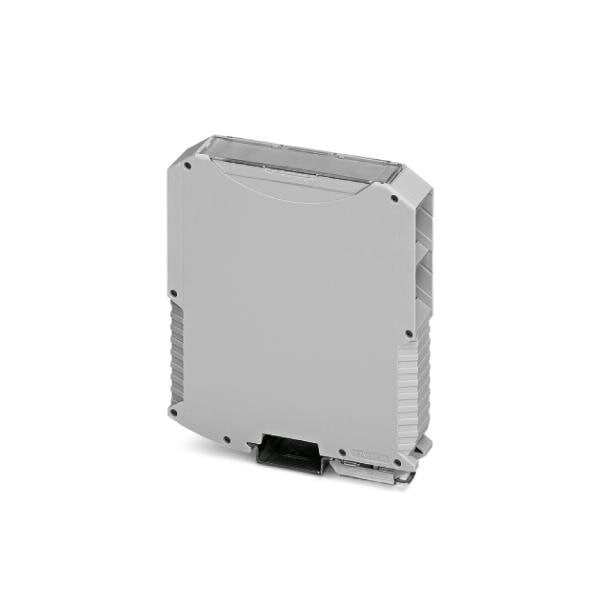 DIN rail housing Complete housing with metal foot catch tall design without vents width: 22.6 mm height: 99 mm depth: 113.65 mm color: light gray 7035 cross connection: DIN rail connector optional number of positions cross connector: 5