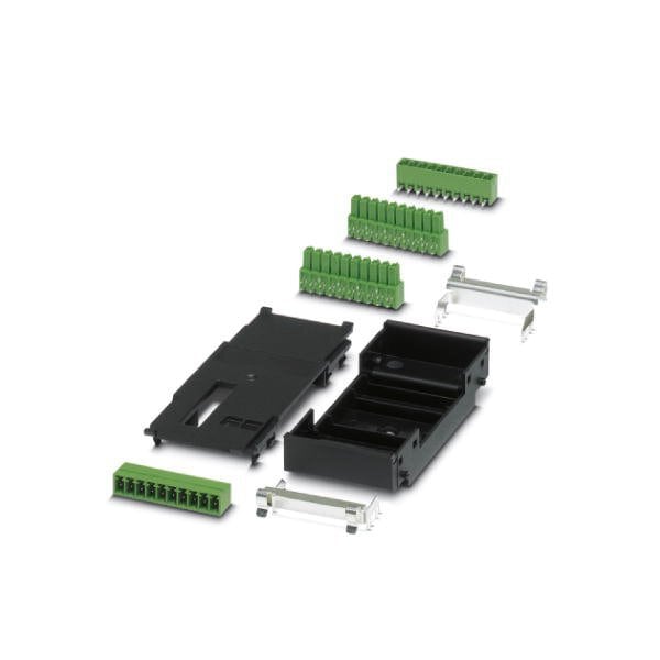 Bus connector set consisting of 2 x 10-pos. connectors plastic upper part and base plus metal clamp for mounting on DIN rail without PCB