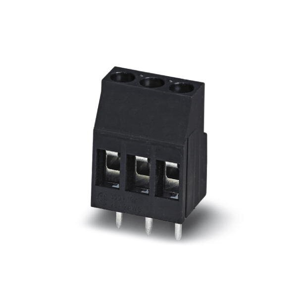 PCB terminal block Nominal current: 24 A Nom. voltage: 400 V Pitch: 5.08 mm Number of positions: 3 Connection method: Screw connection with tension sleeve Mounting: Wave soldering Conductor/PCB connection direction: 0 ° Color: black Connections internally jumpered