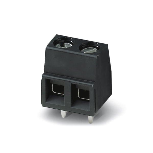PCB terminal block Nominal current: 13.5 A Nom. voltage: 400 V Pitch: 5.08 mm Number of positions: 2 Connection method: Screw connection with tension sleeve Mounting: Wave soldering Conductor/PCB connection direction: 0 ° Color: green