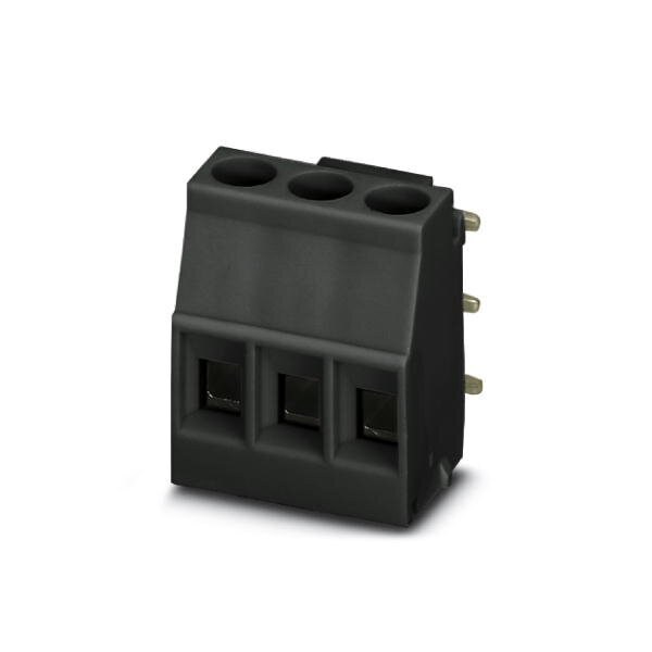 PCB terminal block Nominal current: 24 A Nom. voltage: 400 V Number of positions: 3 Connection method: Screw connection with tension sleeve Mounting: Wave soldering Conductor/PCB connection direction: 0 °