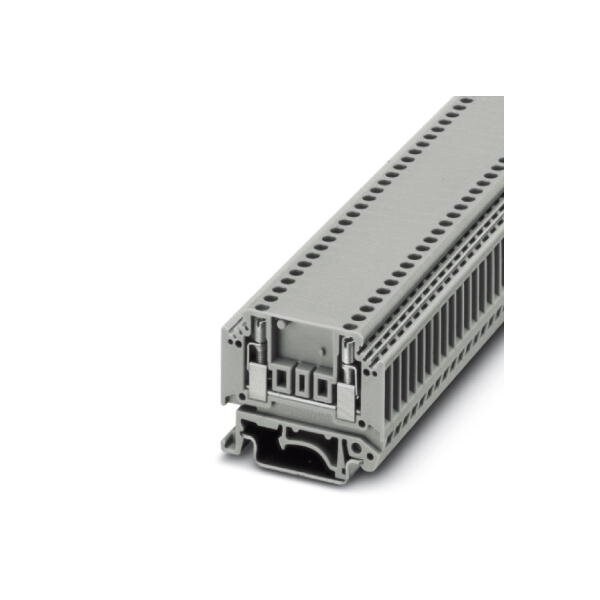 Feed-through terminal block With test socket screws for insertion of test plugs nom. voltage: 400 V nominal current: 16 A connection method: Screw connection number of connections: 2 cross section: 0.2 mm - 4 mm AWG: 24 - 12 width: 5.2 mm color: gray mounting type: NS 35